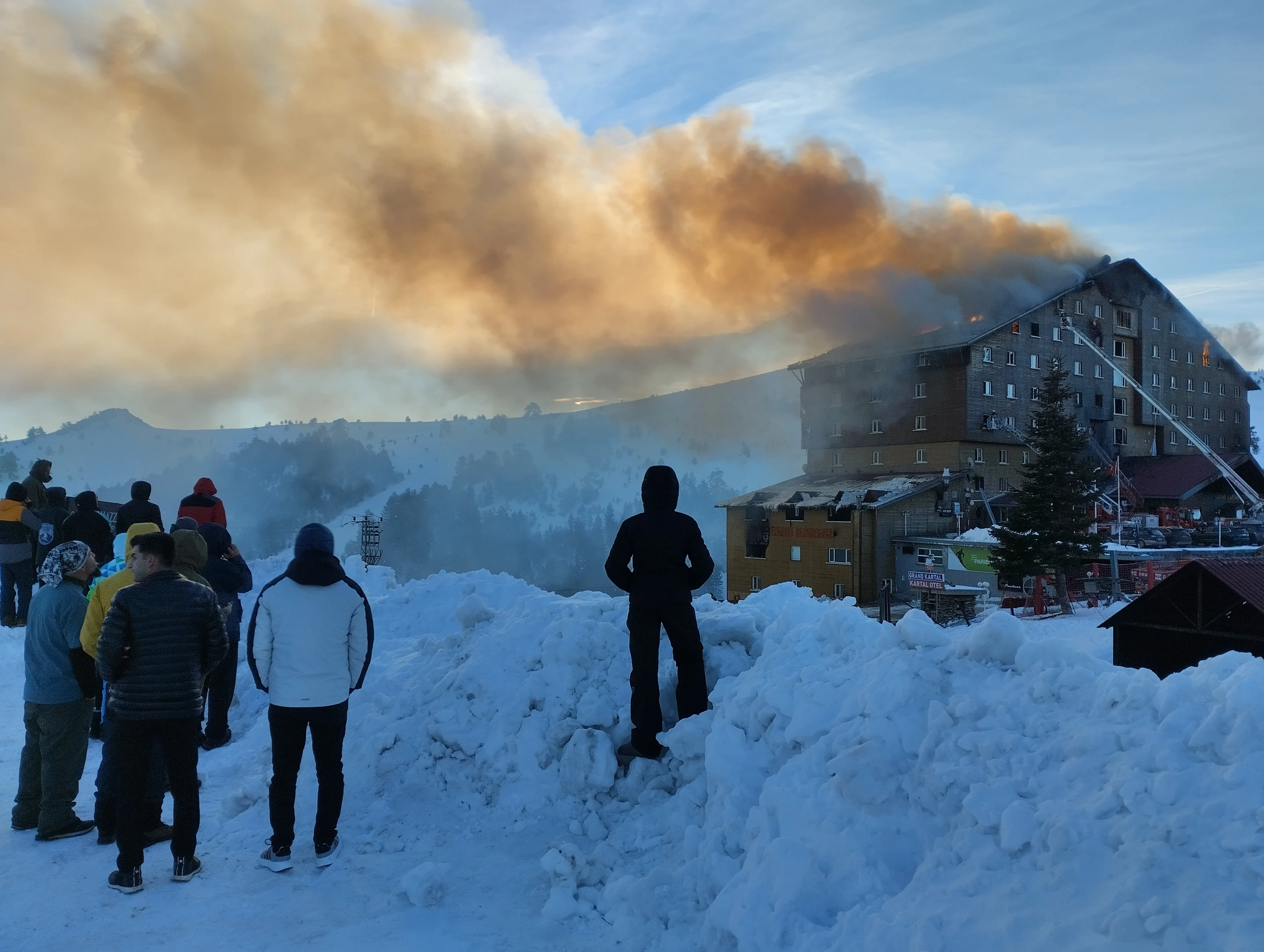 Bolu Kartalkaya Kayak Merkezi’ndeki bir otelde çıkan yangında ilk belirlemelere göre 10 kişi öldü, 32 kişi yaralandı. Köroğlu Dağları’nın zirvesinde yer alan merkezdeki bir otelde henüz belirlenemeyen nedenle yangın çıktı. Alevler kısa sürede oteli sardı. İhbar üzerine bölgeye kent merkezi, ilçeler ve çevre illerden çok sayıda itfaiye, AFAD, UMKE ve sağlık ekibi sevk edildi.