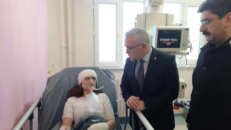 Sivas Valisi Yılmaz Şimşek, Yıldızdağı Kayak Merkezinde yaşanan patlamada yaralanan 4 sporcuyu tedavi gördükleri hastanelerde ziyaret etti.