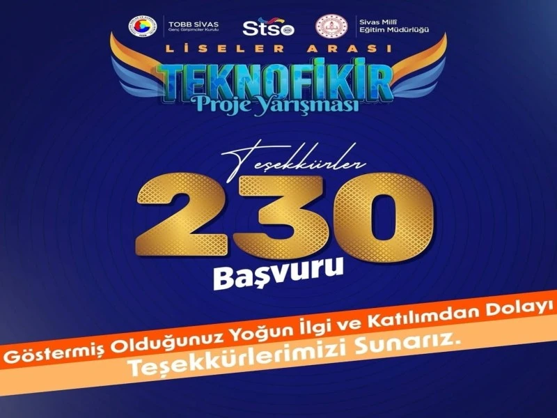 Sivas Valiliği himayesinde Millî Eğitim Müdürlüğü ve Sivas Ticaret ve Sanayi Odası Odalar ve Borsalar Birliği Sivas Genç Girişimciler Kurulu iş birliğinde hayata geçirilen TEKNOFİKİR Projesi kapsamında düzenlenen proje yarışmasında başvuru süreci tamamlandı.