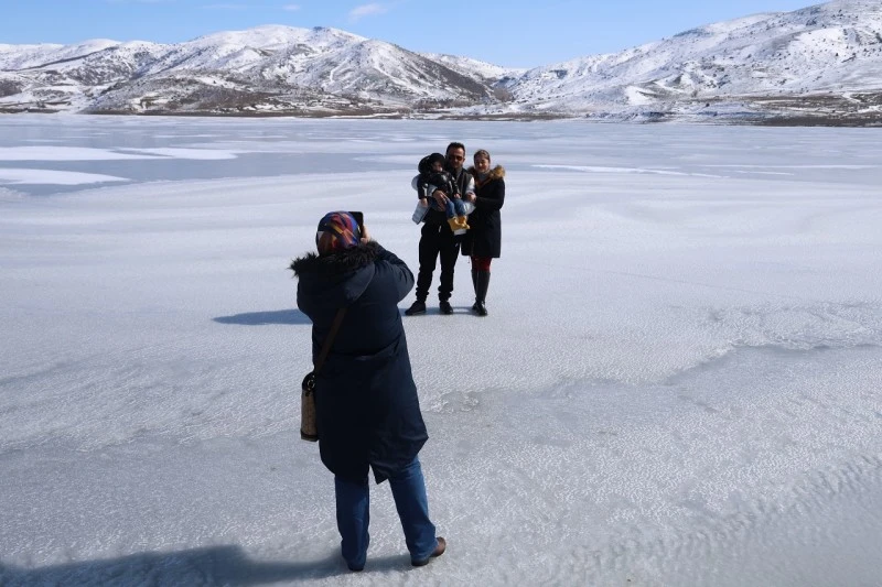 Çeşitli illerden kış tatili için Sivas’a geldiklerini belirtenler, buz tutan gölün yüzeyinde yürüme fırsatı bularak tarifsiz bir deneyim yaşadıklarını dile getirdiler.