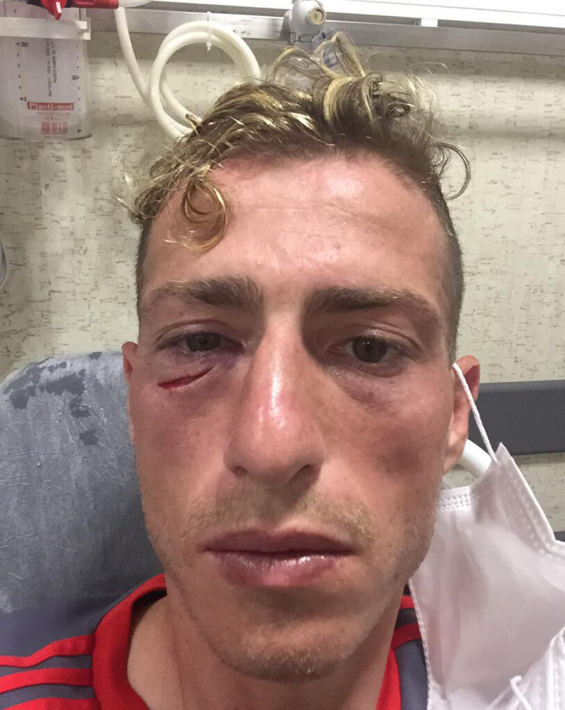 “Oyuncumuz Hakan Arslan, sağ göz alt kısmına aldığı darbe neticesinde yüzünde yaklaşık 3 cm’lik bir açılma oluştu. Hastanede yapılan detaylı değerlendirmesinde ek bir problem saptanmadı. Oyuncumuzun genel durumu iyi olmakla birlikte tedavisi Sivas’ta yapılacak.”