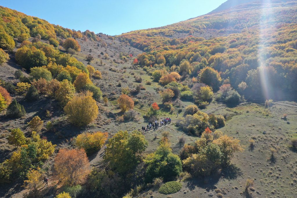 Yusufoğlan köyünden başlayan yürüyüş, Yıldız Dağı Kayak Merkezi’ne kadar sonbaharın eşsiz güzellikleri arasında devam etti. Yaklaşık 7 kilometrelik parkurda son baharın tüm renkleri göz kamaştırdı.