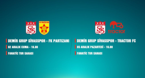 Öte yandan Sivasspor’un, kamptaki ilk iki hazırlık maçının programı da belli oldu.  Yarın saat 16.00’da Arnavutluk ekibi FK Partizani ile karşılaşacak olan Sivasspor 5 Aralık Pazartesi günü saat 16.00’da ise İran ekibi Tractor FC ile karşılaşacak.