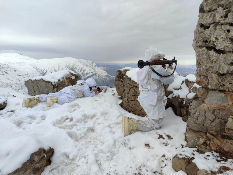 Bakanlığın sosyal medya hesabından, ‘Zorluklara karşı her daim mücadele! Kahraman komandolarımız, zorlu hava şartlarına rağmen teröristle mücadelesini kararlılıkla sürdürüyor’ notuyla fotoğraflar paylaşıldı. Paylaşımda, askerlerin zorlu kış şartlarında görev yaptığı fotoğraflara yer verildi.