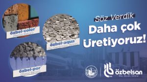 Temel ve çatılarda sızıntıyı önleyen yapısıyla öne çıkan su geçirimsiz yalıtımlı beton (Özbel-Aqua) dışında şehre estetik bir dokunuş ve görünüm kazandıracak olan renkli beton (Özbel-Color) özellikle yürüyüş yollarında ağırlıklı olarak kullanılacak.