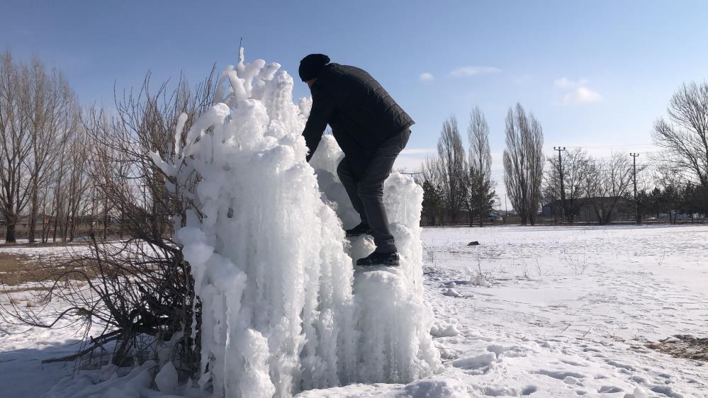 Bunun yanı sıra, kent merkezinde patlayan bir su borusunun fışkırttığı su, çevresindeki ağaçları buz tabakalarıyla kapladı. Bu olay sonucu ortaya çıkan, 2 metre yüksekliğindeki buz kütlesi, adeta bir heykel görünümüne büründü ve kameralara yansıdı.