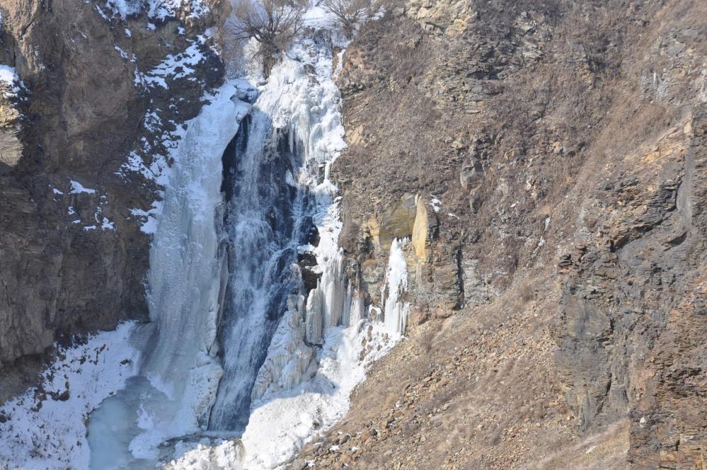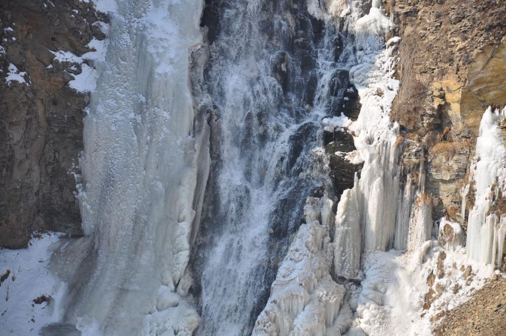 Kars’ta devam eden dondurucu soğuklar, baharın gelmesine rağmen etkisini sürdürüyor. Özellikle Susuz ilçesinde yer alan Susuz Şelalesi, bu soğuk havaların etkisiyle yeniden donmuş durumda. Şelaleden akan suyun katman katman donması, büyüleyici bir manzara oluşturdu ve bu görüntü, ziyaretçileri adeta büyüledi.