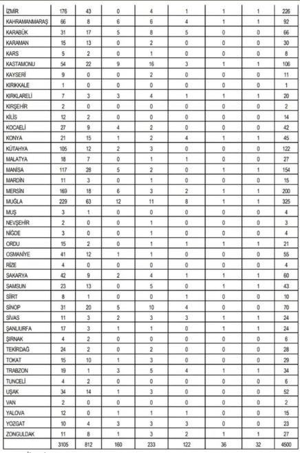 Adana Adıyaman Afyon Ağrı Aksaray Amasya Ankara Antalya Ardahan Artvin Aydın Balıkesir Bartın Batman Bayburt Bilecik Bingöl Bitlis Bolu Burdur Bursa Çanakkale Çankırı Çorum Denizli Diyarbakır Düzce Edirne Elazığ Erzincan Erzurum Eskişehir Gaziantep Giresun Gümüşhane Hakkari Hatay Iğdır Isparta İstanbul İzmir K.Maraş Karabük Karaman Kars Kastamonu Kayseri Kırıkkale Kırklareli Kırşehir Kilis Kocaeli Konya Kütahya Malatya Manisa Mardin Mersin Muğla Muş Nevşehir Niğde Ordu Osmaniye Rize Sakarya Samsun Siirt Sinop Sivas Şanlıurfa Şırnak Tekirdağ Tokat Trabzon Tunceli Uşak Van Yalova Yozgat Zonguldak