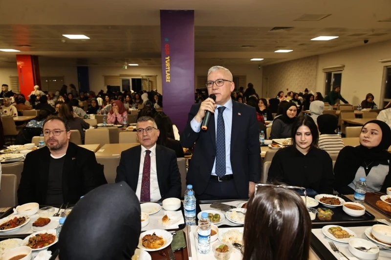 Türkiye Büyük Millet Meclisi (TBMM) AK Parti Grup Başkanı Abdullah Güler, Sivas Valisi Yılmaz Şimşek ve Sivas Cumhuriyet Üniversitesi Rektörü Prof. Dr. Ahmet Şengönül, KYK Binali Yıldırım Kız Öğrenci Yurdu’nda düzenlenen iftar yemeğinde öğrencilerle bir araya geldi.