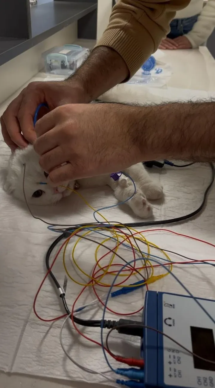 Veterinerlik Fizyolojisi Ana Bilim Dalı’nda görevli Doç. Dr. Mustafa Koçkaya, kedinin işitme testini gerçekleştirdi. Yapılan test sonucunda, Saşa’nın doğuştan işitme engelli olduğu belirlendi.
